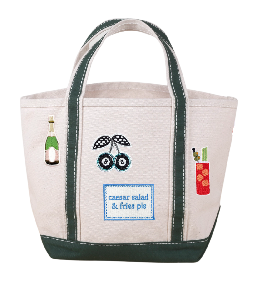 Hunter Green Mini Tote Bag with Girl Dinner Themed Patches