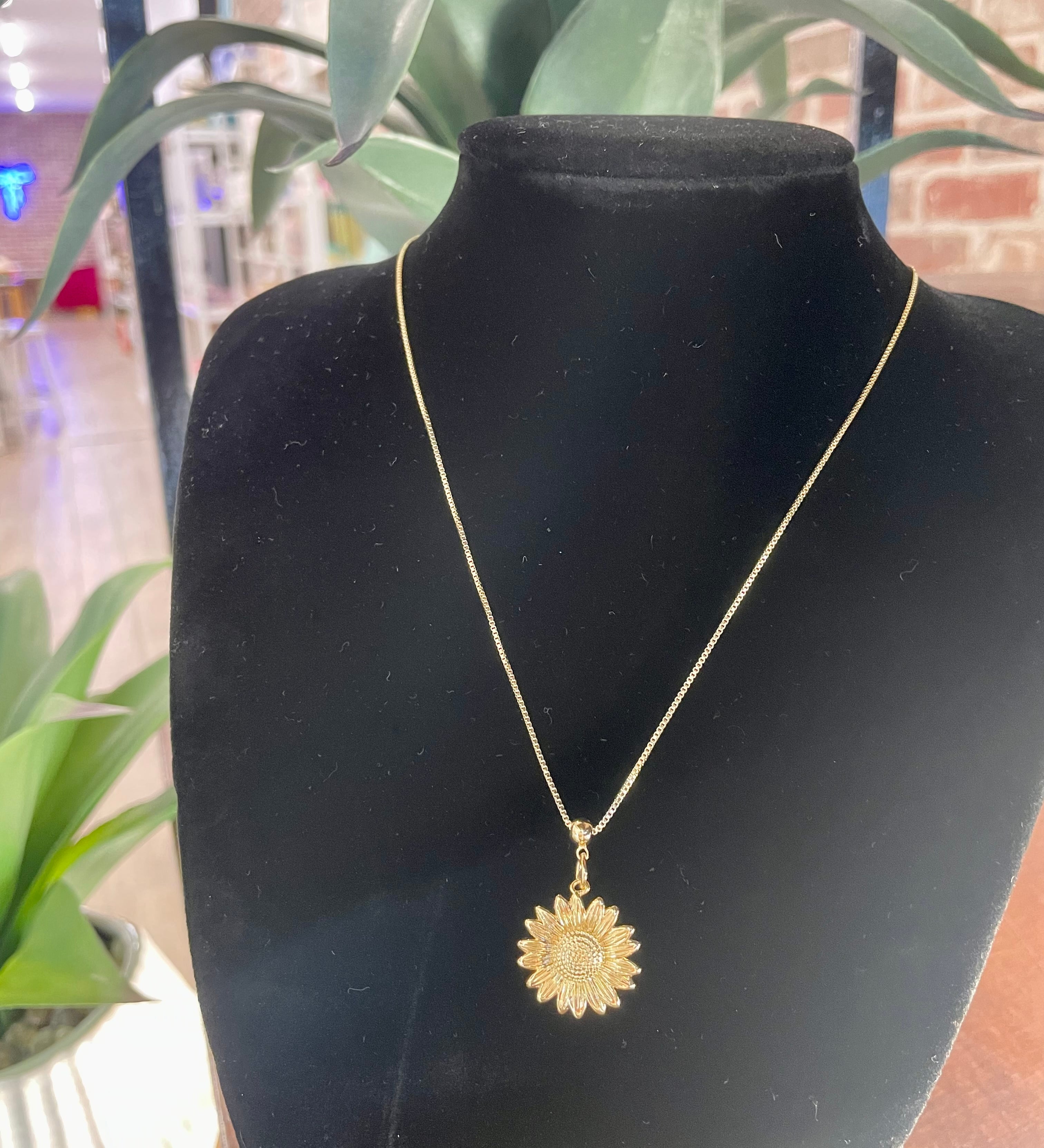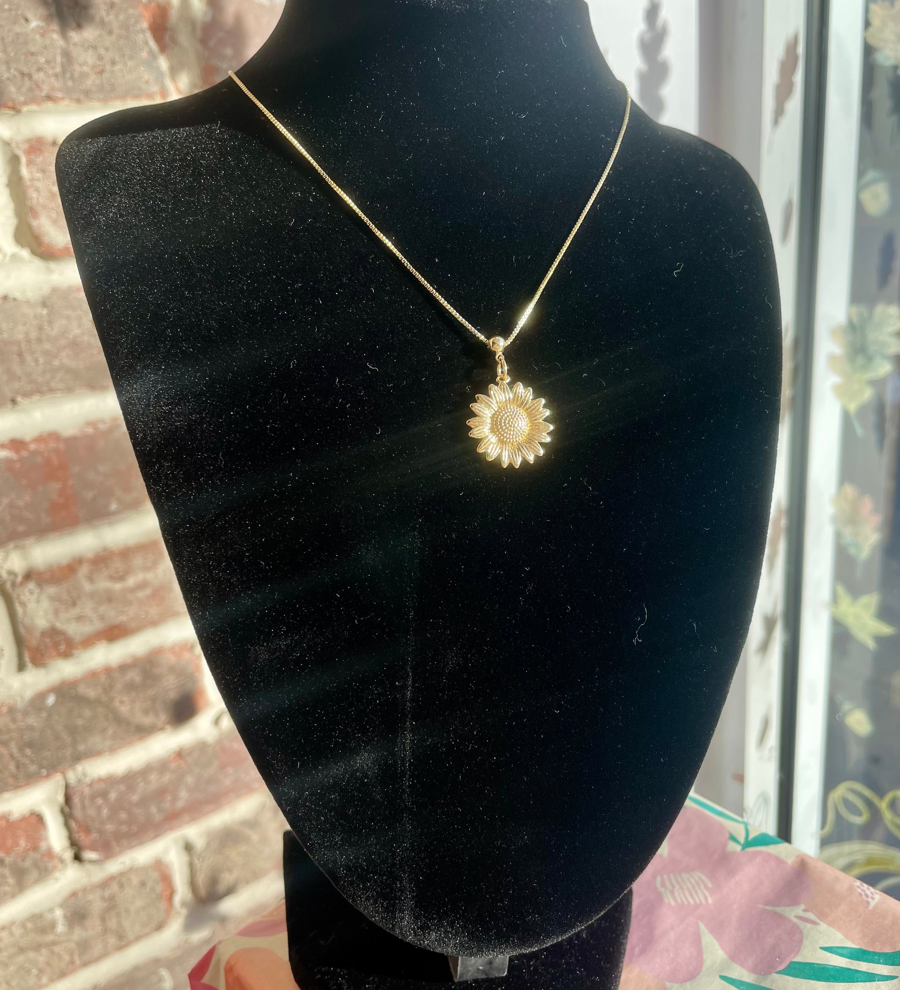 14K Gold Filled Sunflower Charm Necklace with Adjustable Chain