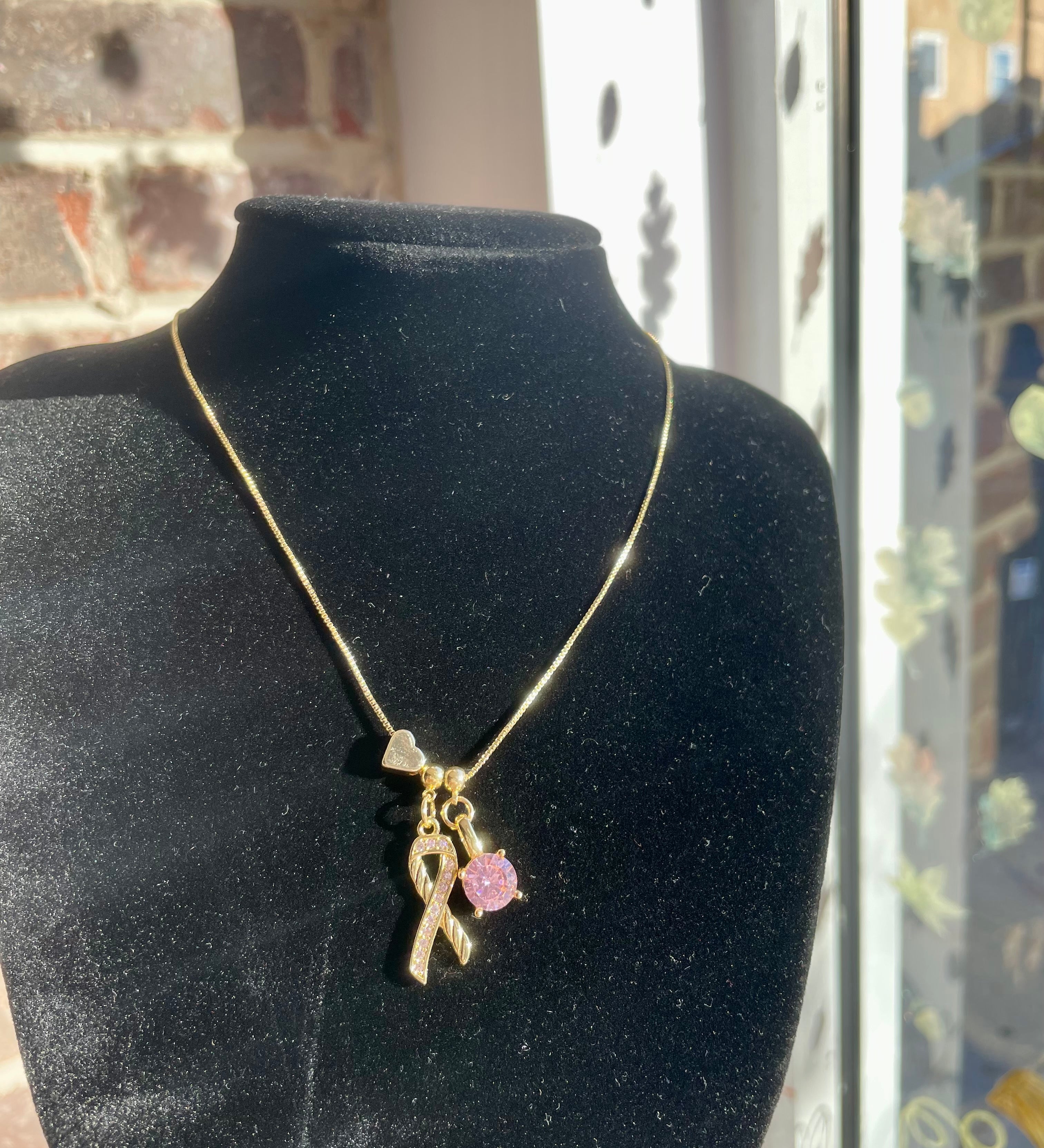 14K Gold Filled Breast Cancer Awareness Inspired Charm Necklace