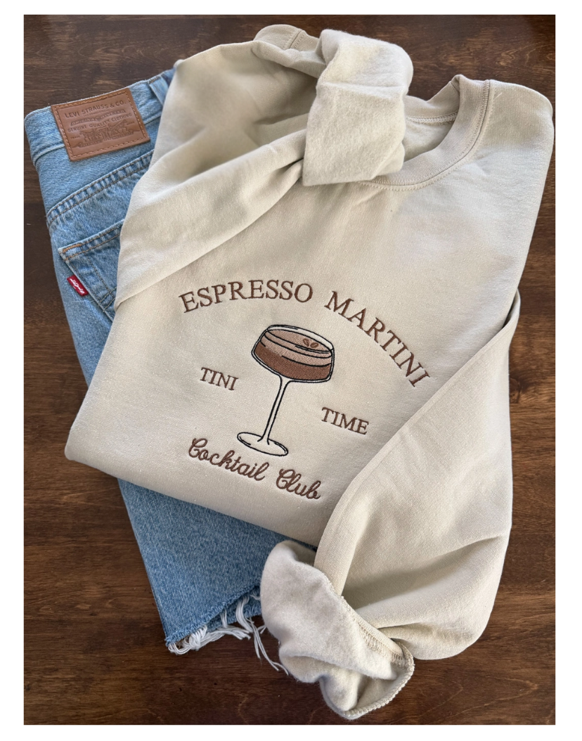 Perfect for cocktail lovers, this cozy crewneck features a detailed embroidered design of the word Espresso Martini, adding a playful touch to your casual wardrobe.