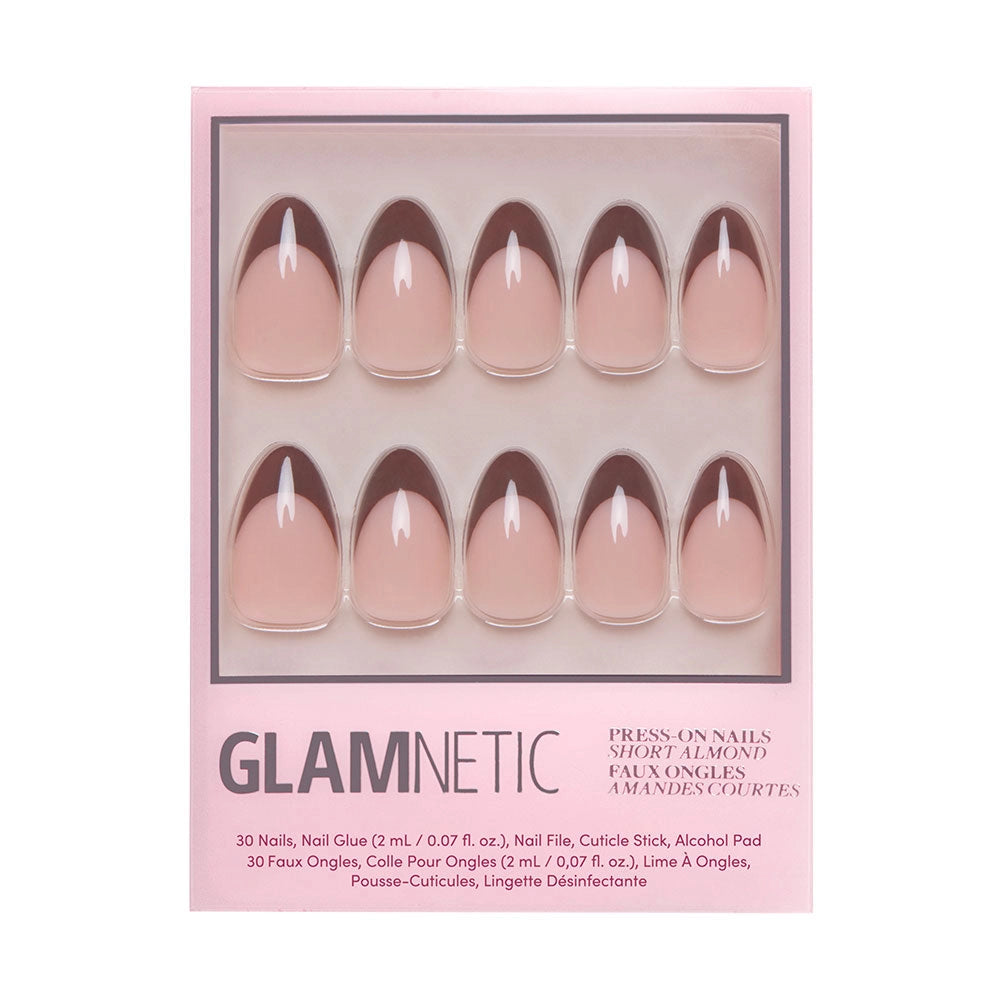 Indulge in the rich elegance of Chocolat. With a deep brown French tip on a semi-translucent base, these short almond nails add a touch of sophistication to every gesture.
