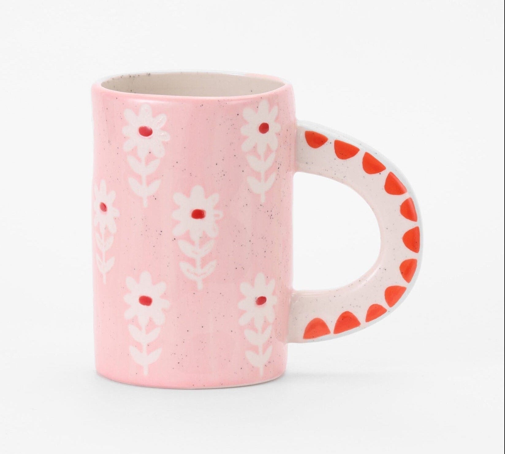 Hand-Painted Pink Floral Ceramic Mug, 14oz.