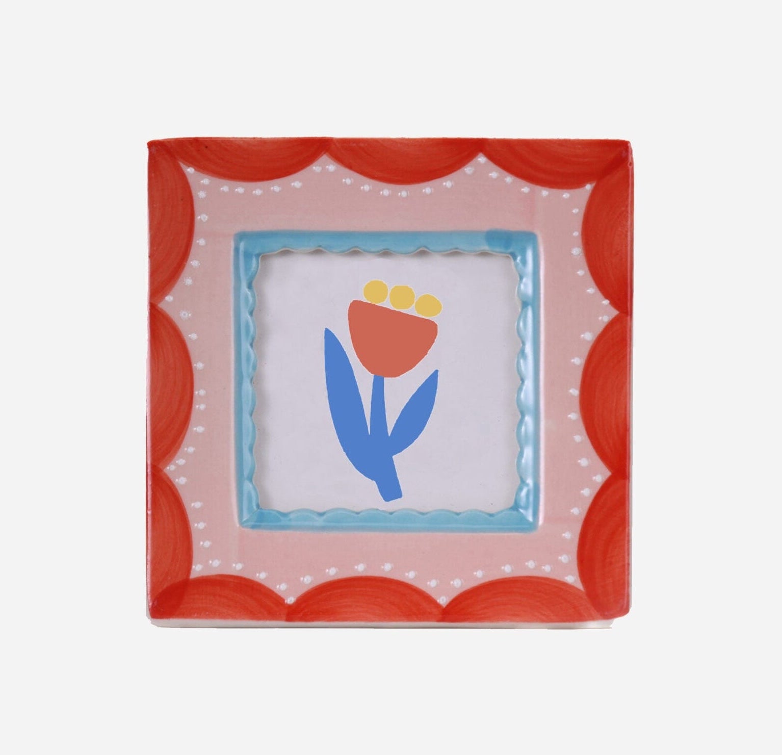 Hand-Painted Red & Pink Scalloped Ceramic Picture Frame