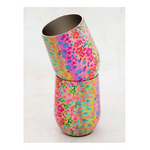 Rainbow Floral Stainless Steel Wine Tumbler, 12oz.