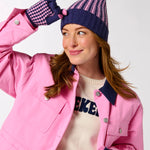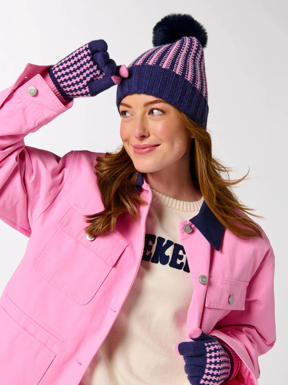 Navy Blue & Pink Houndstooth Touchscreen Gloves