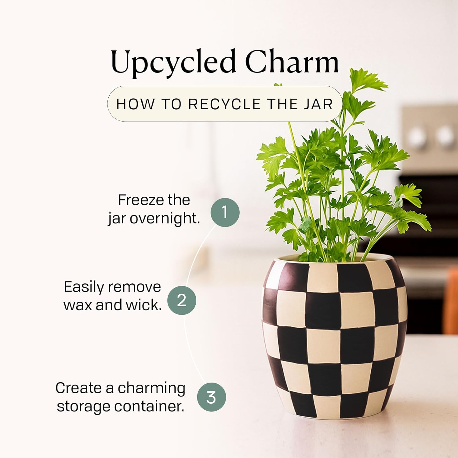After the candle has burned, the food-safe ceramic vessel can be repurposed for your own culinary creations or as a charming decorative piece!