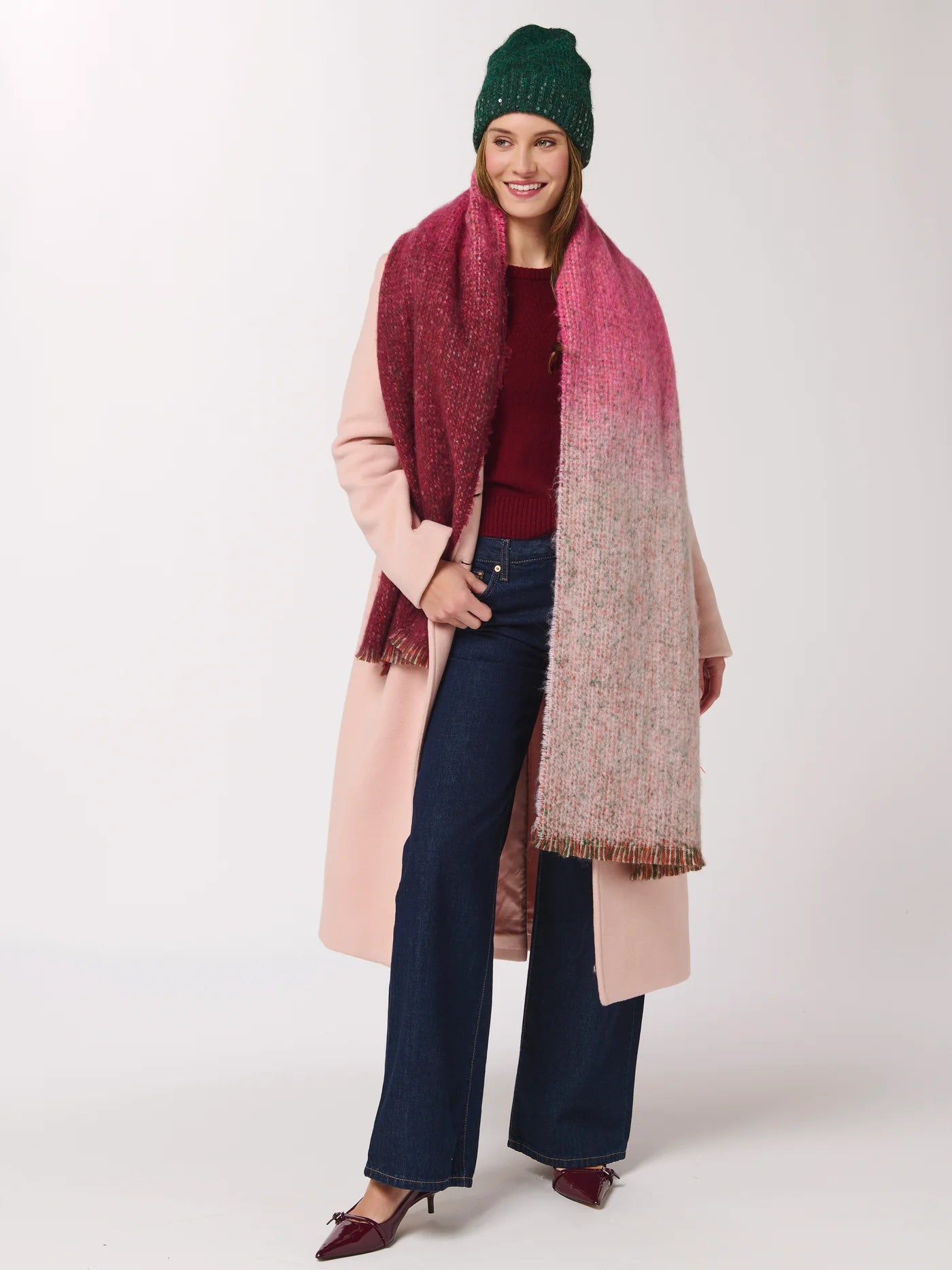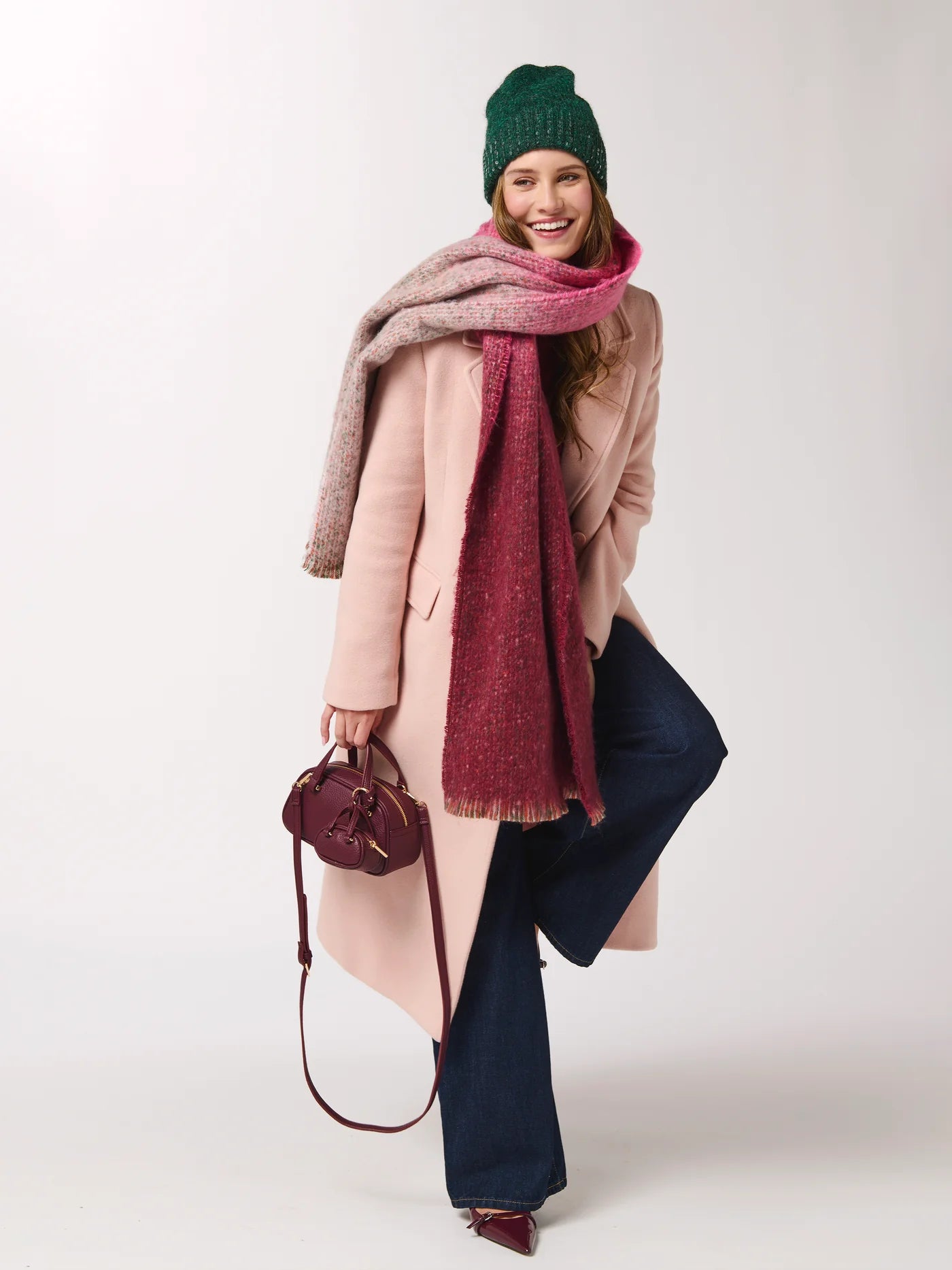 We’re obsessed with the cozy-meets-colorful vibe of this scarf! The ombré effect gives it a playful edge, while the oversized shape makes it perfect for snuggling up in style. It’s one of those accessories that turns a simple coat into a full-on look. Trust us—you’ll reach for it all season long.