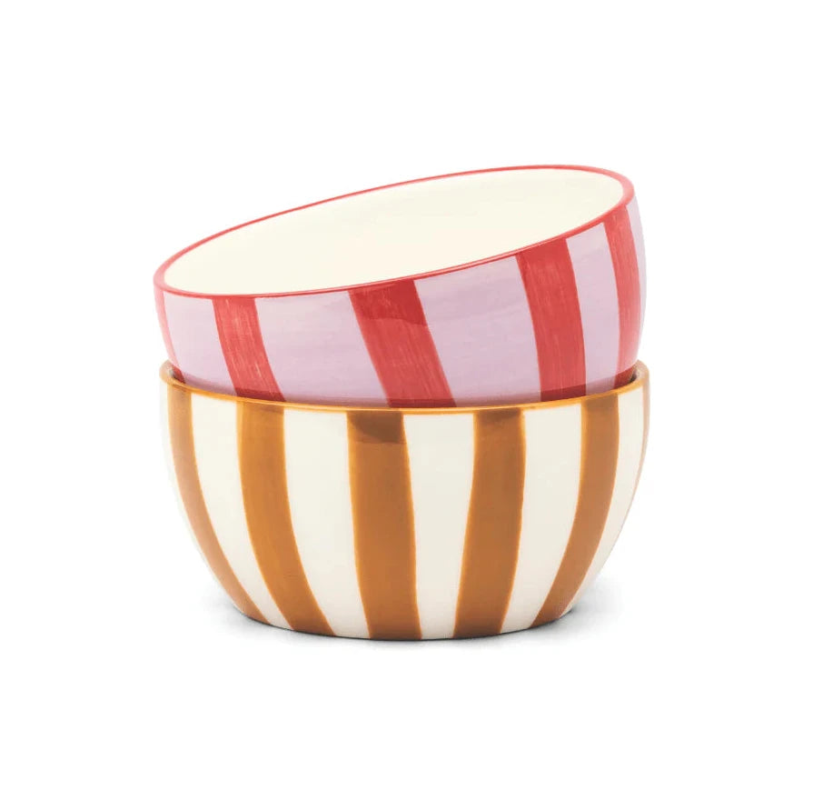 Warm Tone Striped Ceramic Dipping Bowls, Set of 2