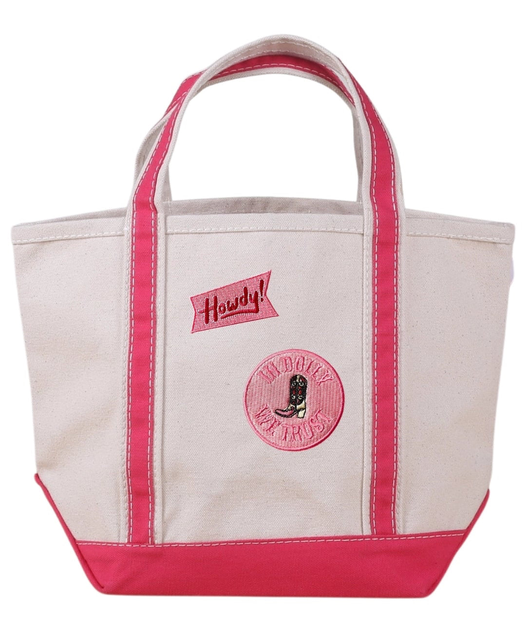 Pink Small Canvas Tote Bag with Dolly Parton & Howdy Patches