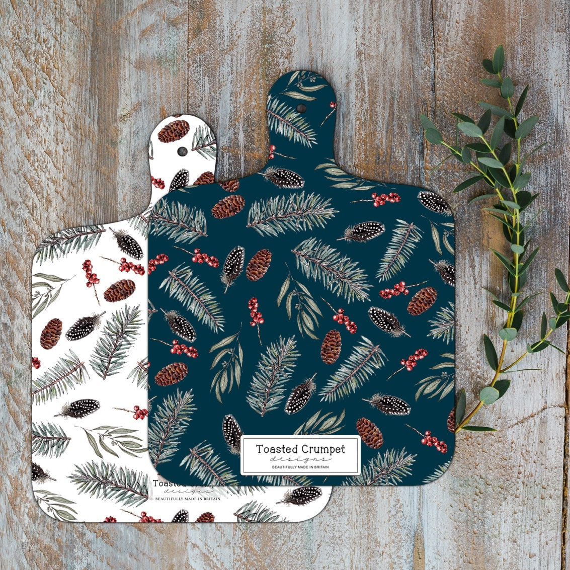 Beautifully finished double sided melamine mini chopping board from a range of British countryside inspired designs based on original Toasted Crumpet watercolour paintings.