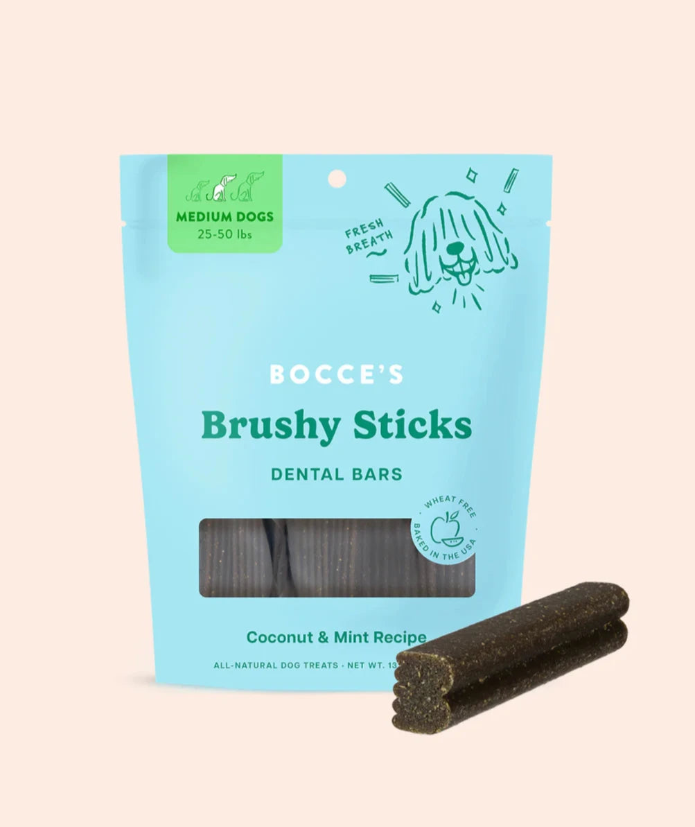 Bocce's Brushy Sticks Dental Bars (Coconut & Mint Flavor) Dog Treats, Medium Sized Dogs