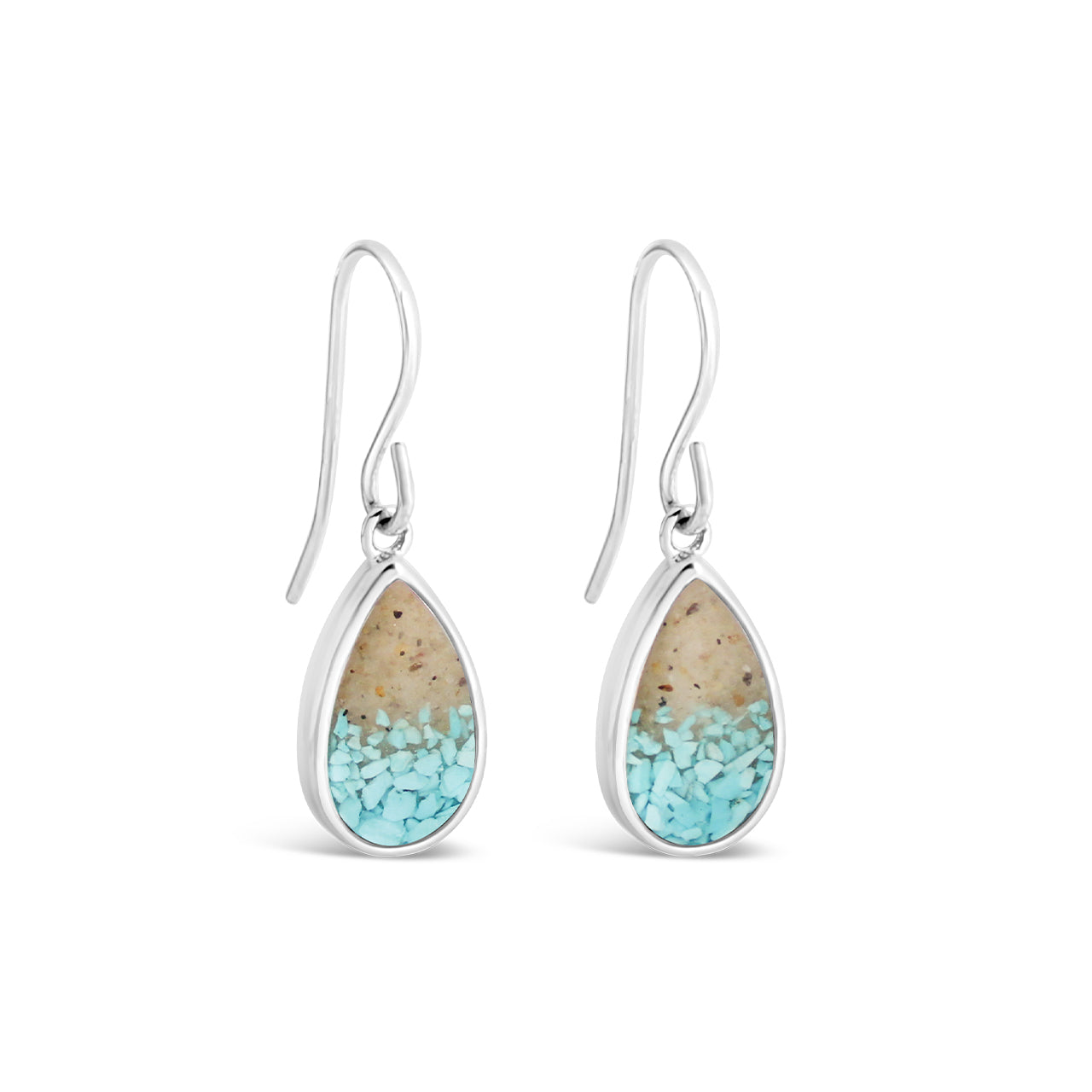 Dune Silver Plated Teardrop Drop Earrings with Turquoise & Sand from the Jersey Shore
