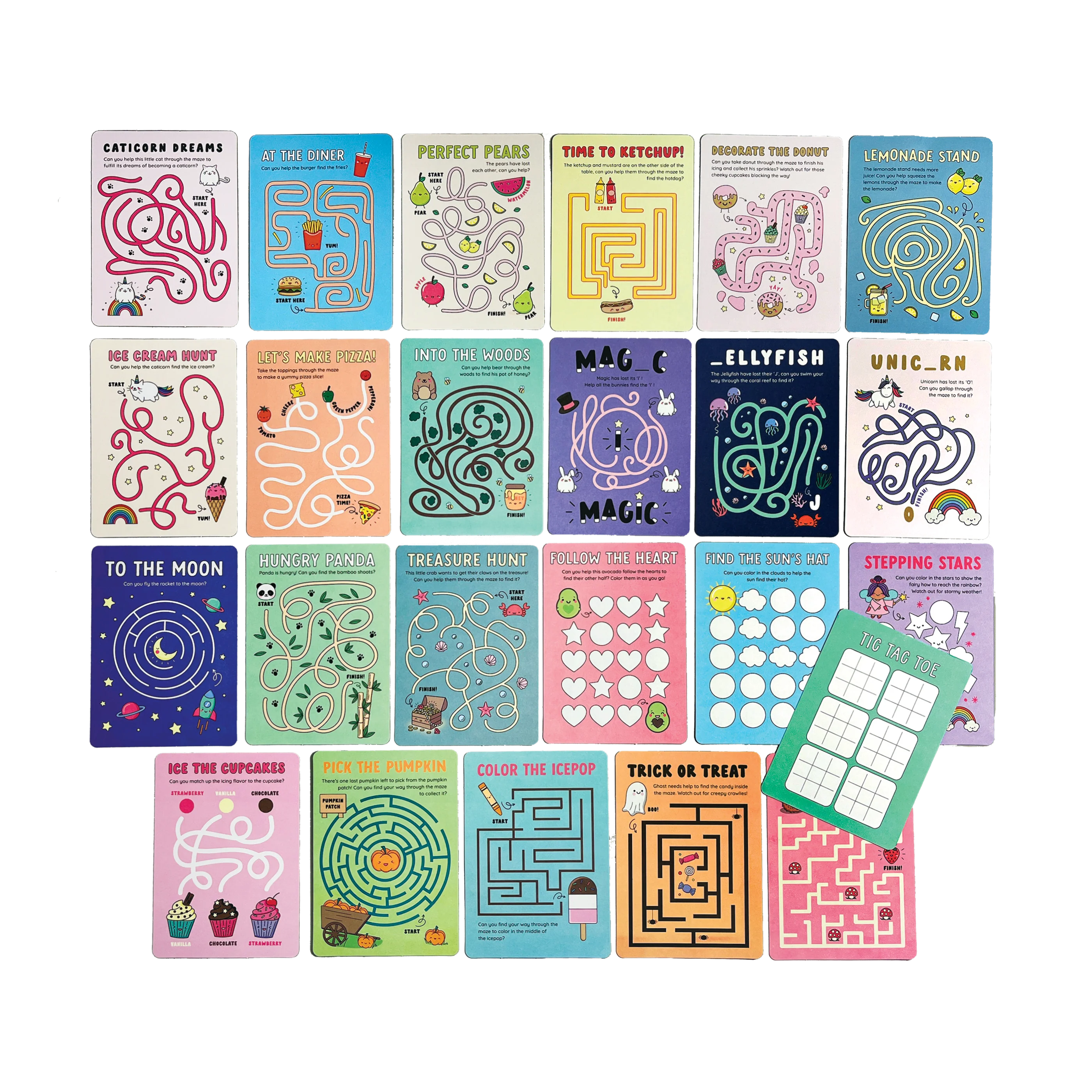 This super fun maze activity set is packed with 24 unique and exciting mazes, each offering a brain-teasing challenge for your little puzzle master. Designed to spark creativity and keep kids entertained, these mini maze cards are perfect for kids at home, in the car, or anywhere you need a boredom buster.