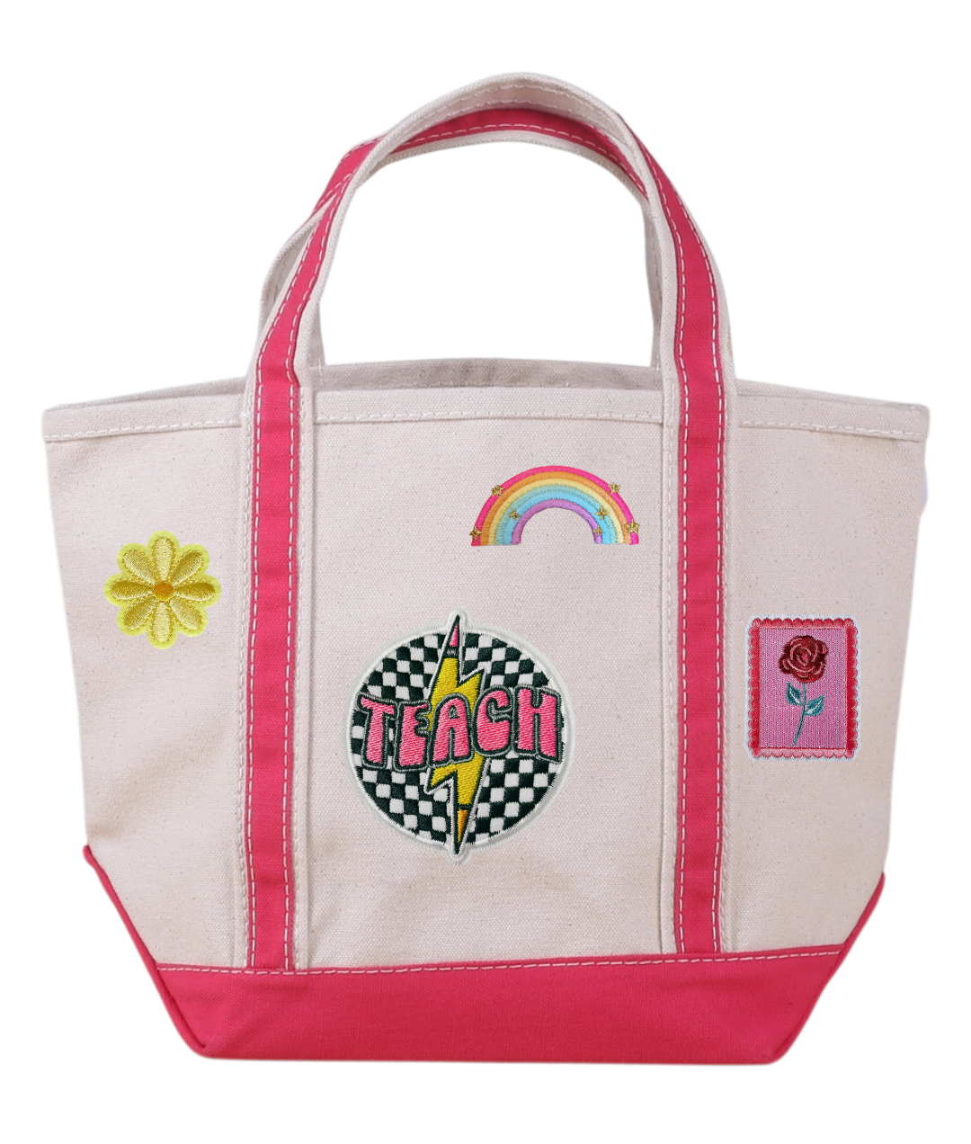 Pink Mini Tote Bag with Teacher Themed Patches