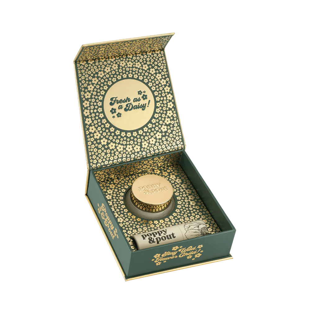 Step up your lip care routine with our Lip Care Duo! This gift set includes one matching lip balm and lip scrub in our signature green and gold, recyclable gift box.
