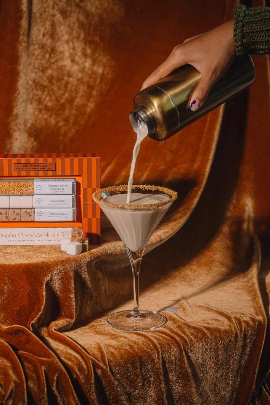Savor the taste of autumn with this indulgent Pumpkin Cheesecake Martini Kit.