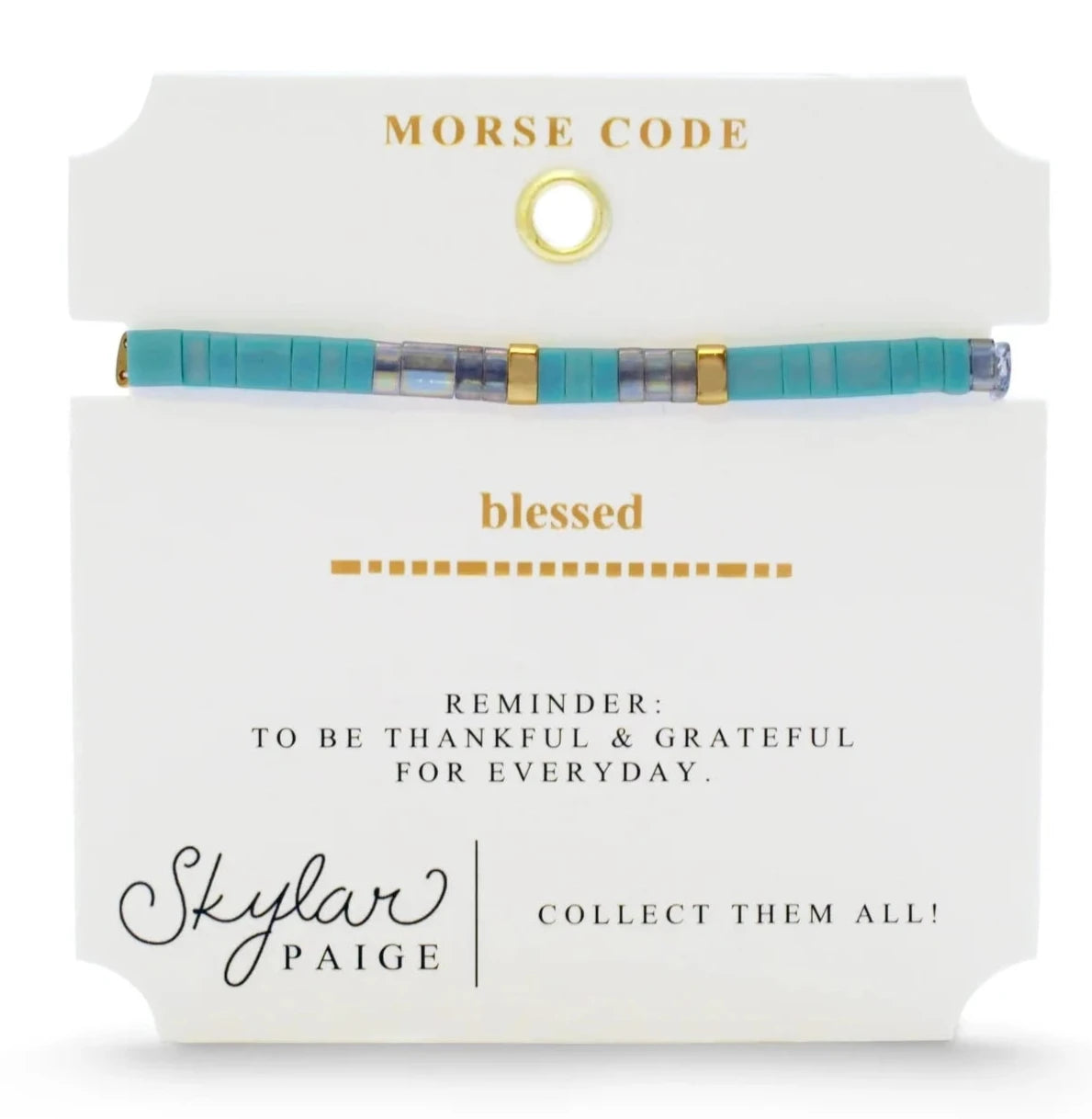 Featuring vibrant glass beads arranged to spell out "BLESSED" in Morse code, this stretch bracelet from Skylar Paige makes a wonderful present for someone special, or a stylish pick-me-up that looks great in any setting.