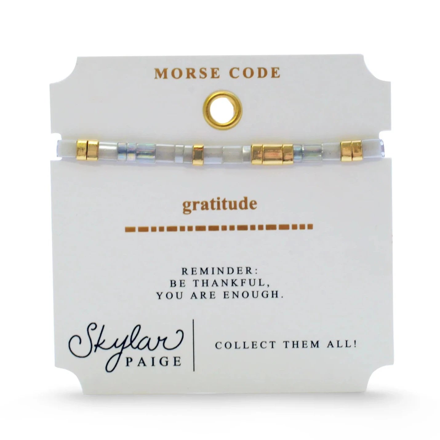 Featuring vibrant glass beads arranged to spell out "GRATITUDE" in Morse code, this stretch bracelet from Skylar Paige makes a wonderful present for someone special, or a stylish pick-me-up that looks great in any setting.