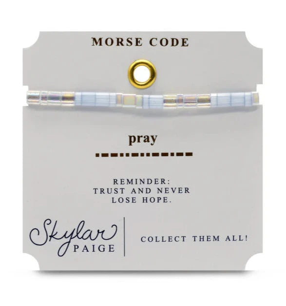 Featuring vibrant glass beads arranged to spell out "PRAY" in Morse code, this stretch bracelet from Skylar Paige makes a wonderful present for someone special, or a stylish pick-me-up that looks great in any setting.