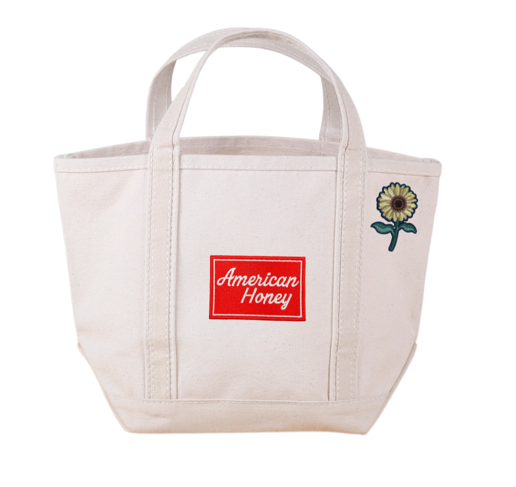 Natural Mini Tote Bag with American Honey & Sunflower Patches