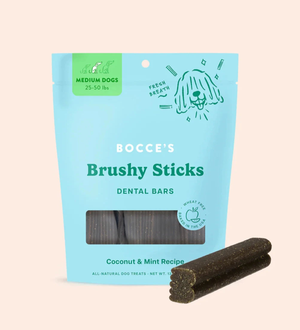 Bocce's Brushy Sticks Dental Bars (Coconut & Mint Flavor) Dog Treats, Medium Sized Dogs
