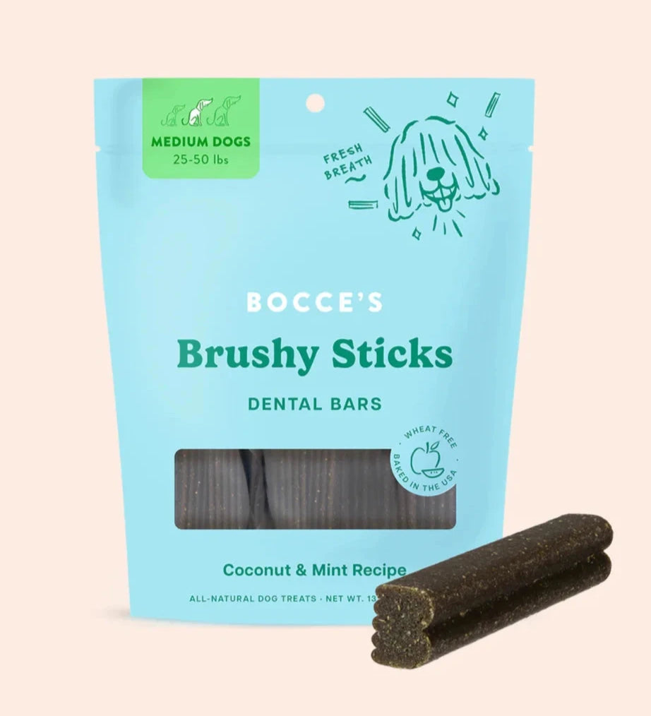 Bocce's Brushy Sticks Dental Bars (Coconut & Mint Flavor) Dog Treats, Medium Sized Dogs