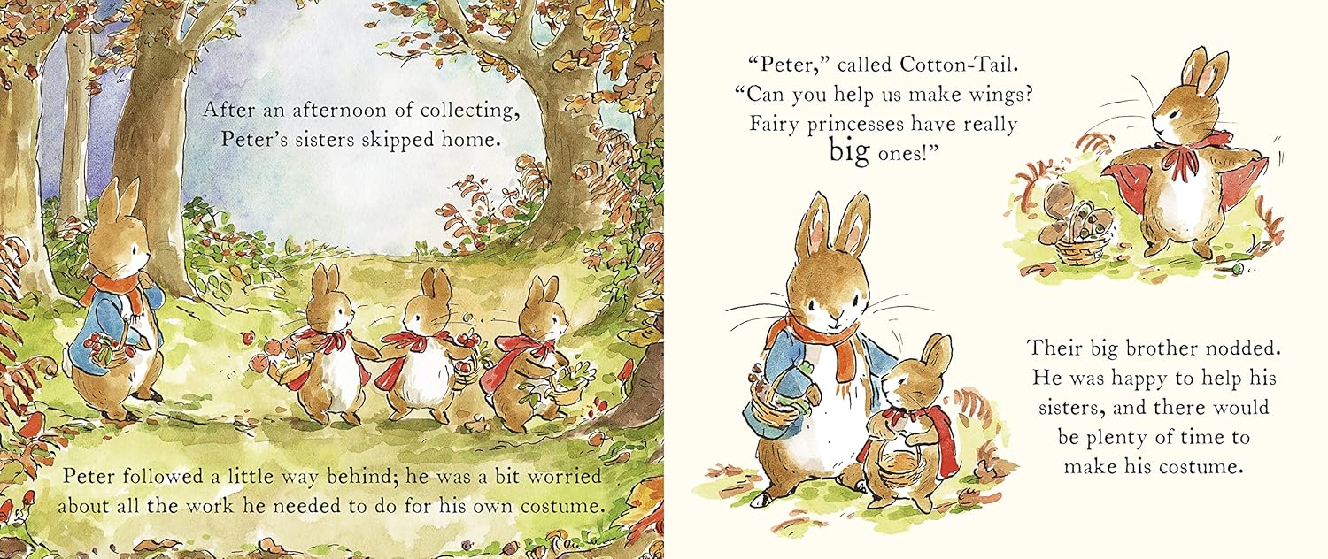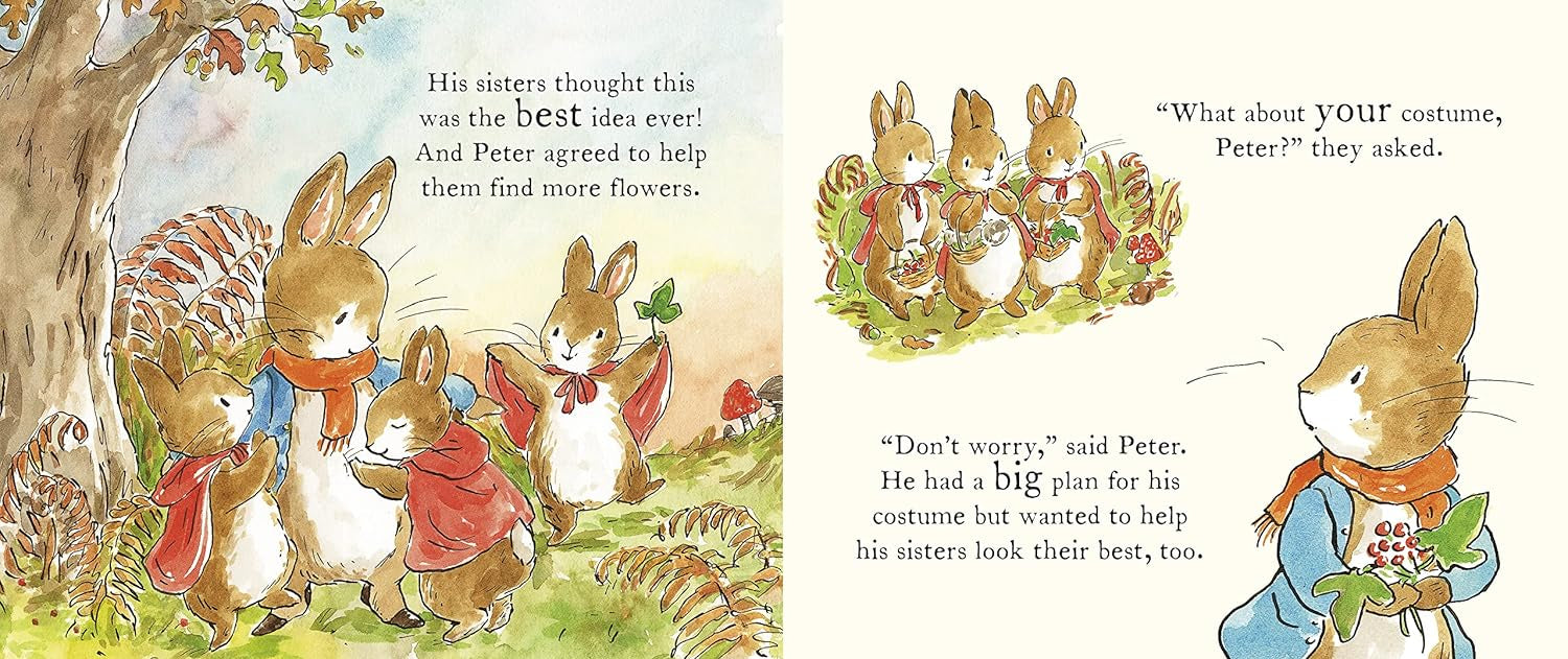Peter Rabbit is so excited to wear his radish costume and show it to all of his friends when they go trick-or-treating. But first, Peter must help his sisters decide what their costume will be--there are so many choices!