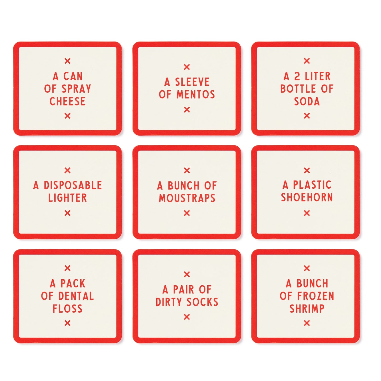 See, you only have 3 randomly drawn objects at your disposal to use—anything from a rubber duck to a can of spray cheese. With endless possibilities and endless laughter, this game is guaranteed to keep the party going long into the night!
