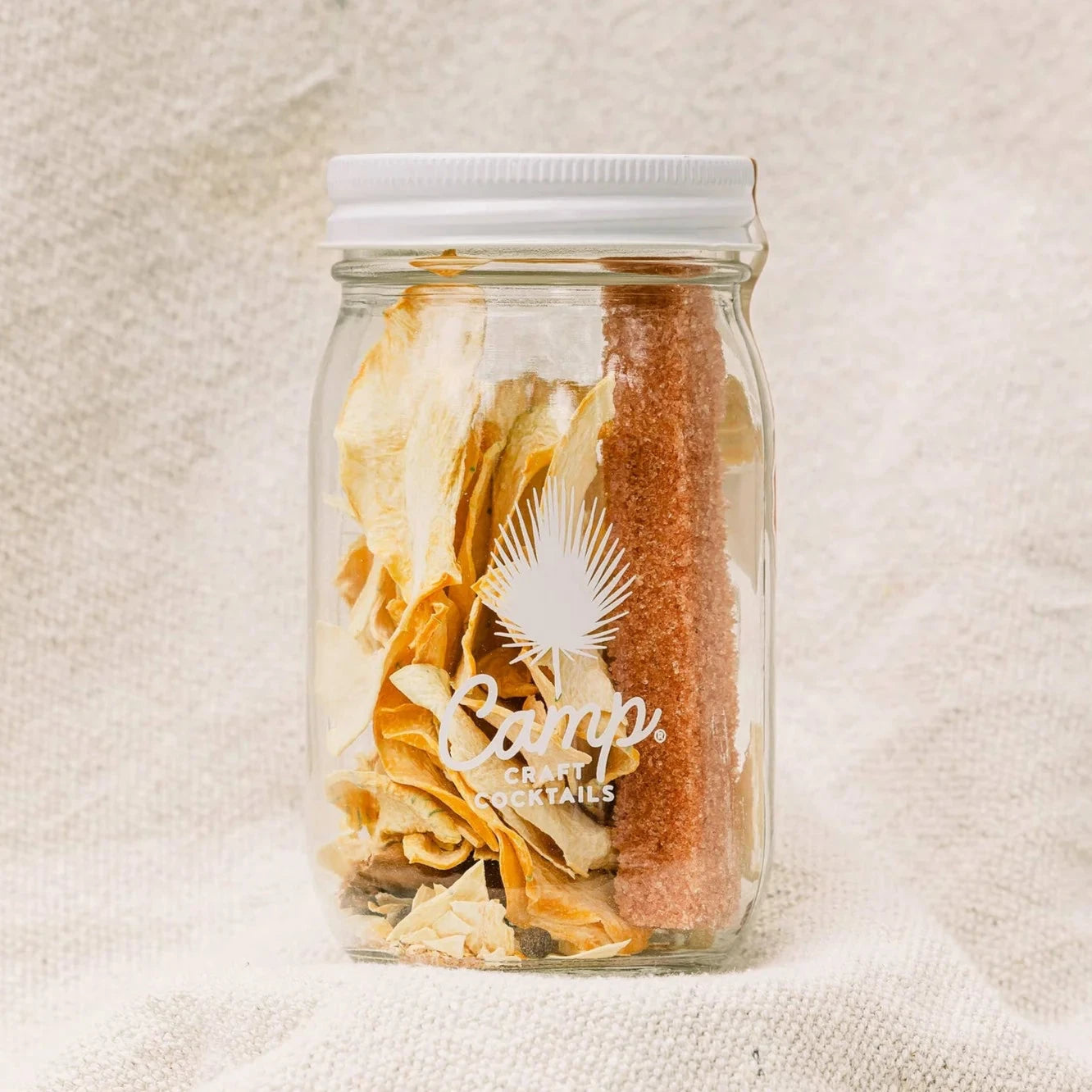Fill your Pumpkin Smash Camp Kit with hot water, shake, and allow it to cool. Makes eight zero proof mocktails.
