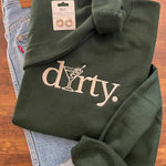 Perfect for cocktail lovers, this cozy crewneck features a detailed embroidered design of the word dirty with a Martini, adding a playful touch to your casual wardrobe. Whether you’re meeting friends for drinks, lounging at home, or heading out for a coffee run, this sweatshirt is perfect for day to day wear.