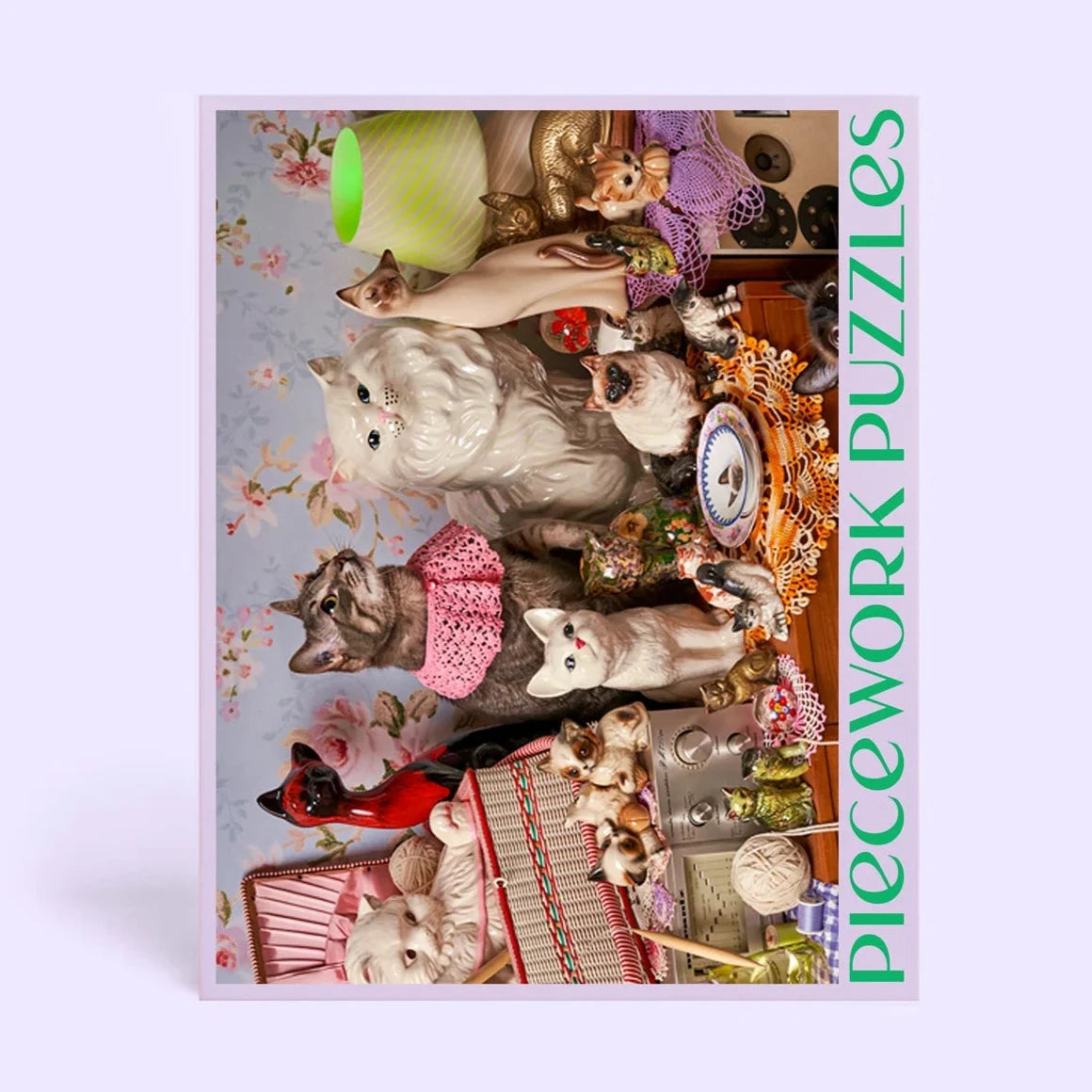 Look at what the cat dragged in: 22 kitties in one puzzle. This thousand piecer has nine lives and then some. Featuring two feline friends and a cornucopia of tchotchkes, our humble cat puzzle is the cat’s pajamas if we can say so ourselves.
