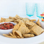 Our a-nora-ble chip and dip platter is made of high-quality melamine, making it durable and convenient for outdoor use. its functional design makes it easy for small dip containers to fit perfectly into the platter, mess-free!