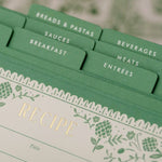 This charming tin features delightful illustrations with shiny accents, making it as fun to display as it is functional. Inside, you'll find 12 handy dividers and 24 coordinating recipe cards, perfect for sorting and sharing your favorite dishes.