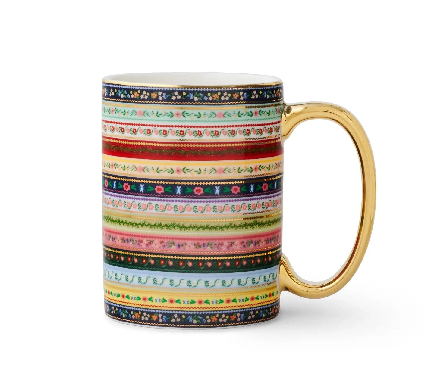This Rifle Paper Co. porcelain mug features illustrated designs and a gilded rim and handle to add a little something special to your favorite beverage.