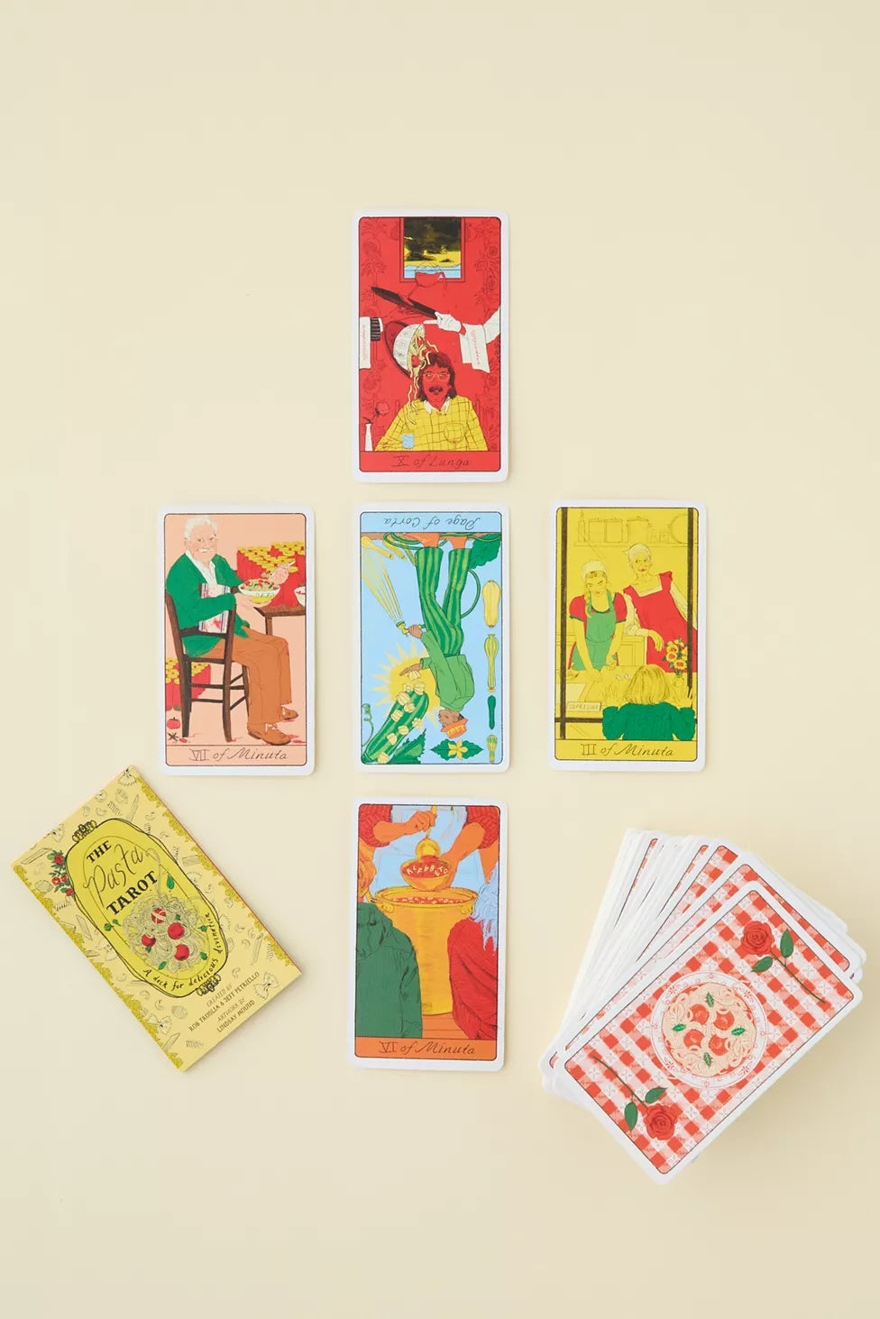 A 78-card pasta-themed tarot deck for delicious divination. Rooted in the authors’ queer Italian American identities, this 78-card deck and accompanying pamphlet offer readers a contemporary, playful take on tarot.