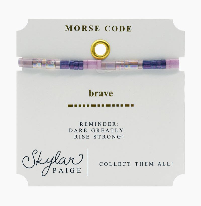 Featuring vibrant glass beads arranged to spell out "BRAVE" in Morse code, this stretch bracelet from Skylar Paige makes a wonderful present for someone special, or a stylish pick-me-up that looks great in any setting.