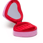 Heart Shaped Velvet Zip Jewelry Case with Pink Bow
