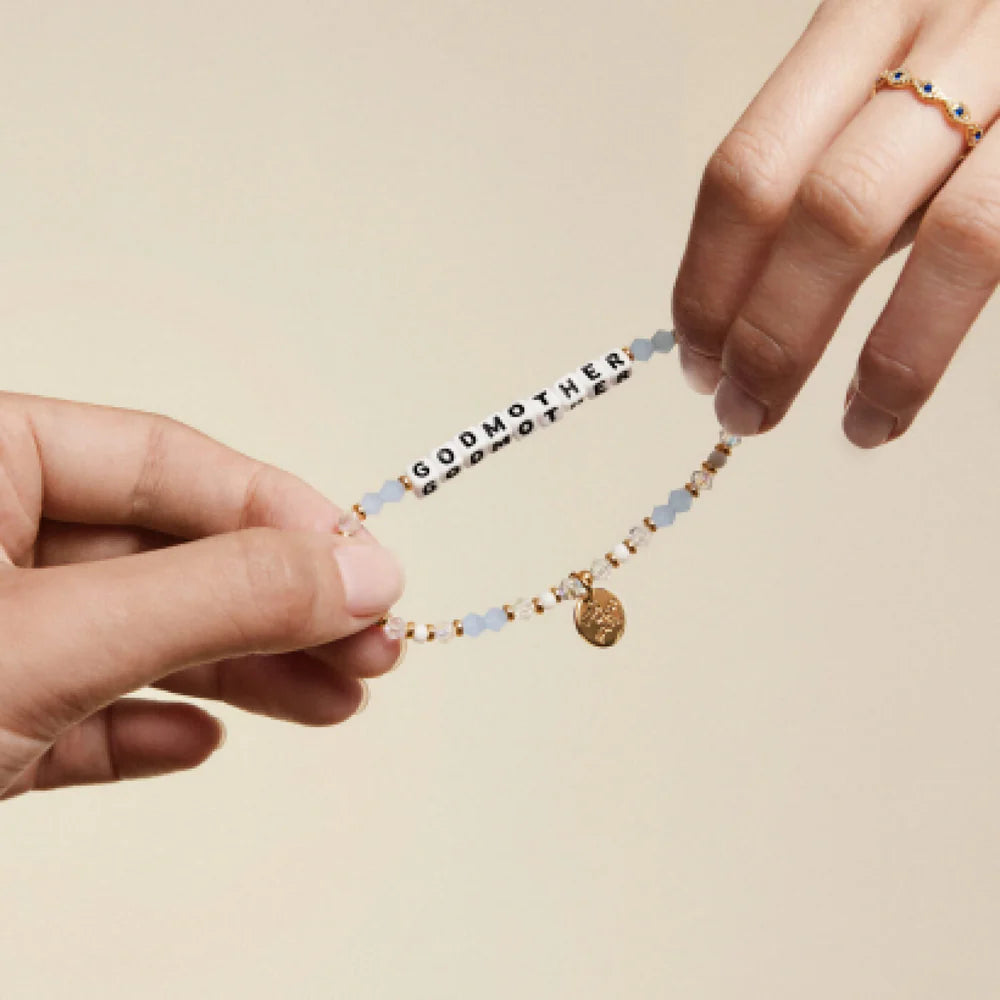 A fab gift for your godmother, comin’ in hot. Celebrate her with a handcrafted blue and white beaded bracelet designed to be stacked or worn solo.
