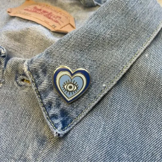 This Evil Eye Heart Pin combines a spiritual talisman of protection with a Y2K aesthetic that adds super cute vibes while keeping bad juju away!