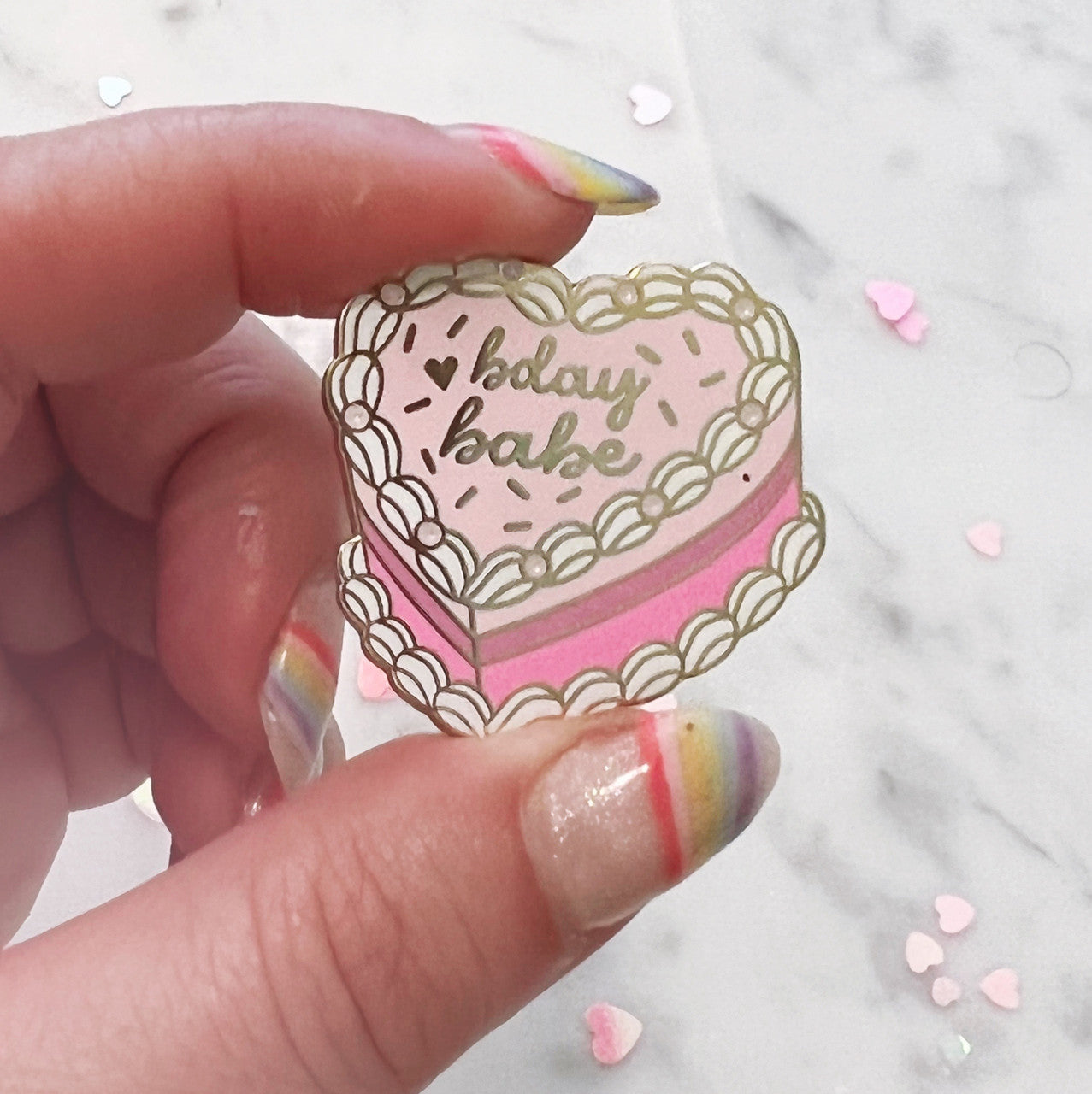 A celebratory pink cake pin is the perfect birthday gift for your big day!