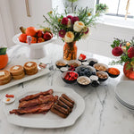 Elegant and refined! The stoneware pretty platter’s artful corners and pinstriped edges make every gathering feel effortlessly stylish.