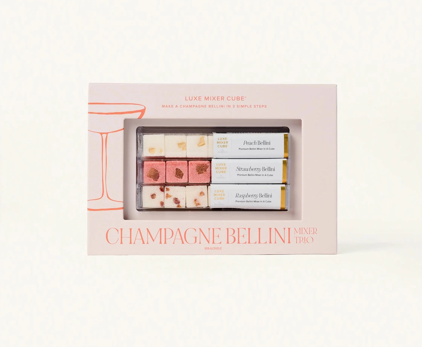 Three of the best brunch cocktails...now in a cube. Our Champagne Bellini Mixer Kit transforms any bottle of bubbly into a custom masterpiece.