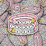 These stickers are printed on a permanent glossy waterproof vinyl.
