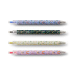 Make note-taking a whole lot brighter with this set of 4 retractable gel pens. Each pen has a different ink— blue, black, red, and metallic gold— with coordinating Estee florals.