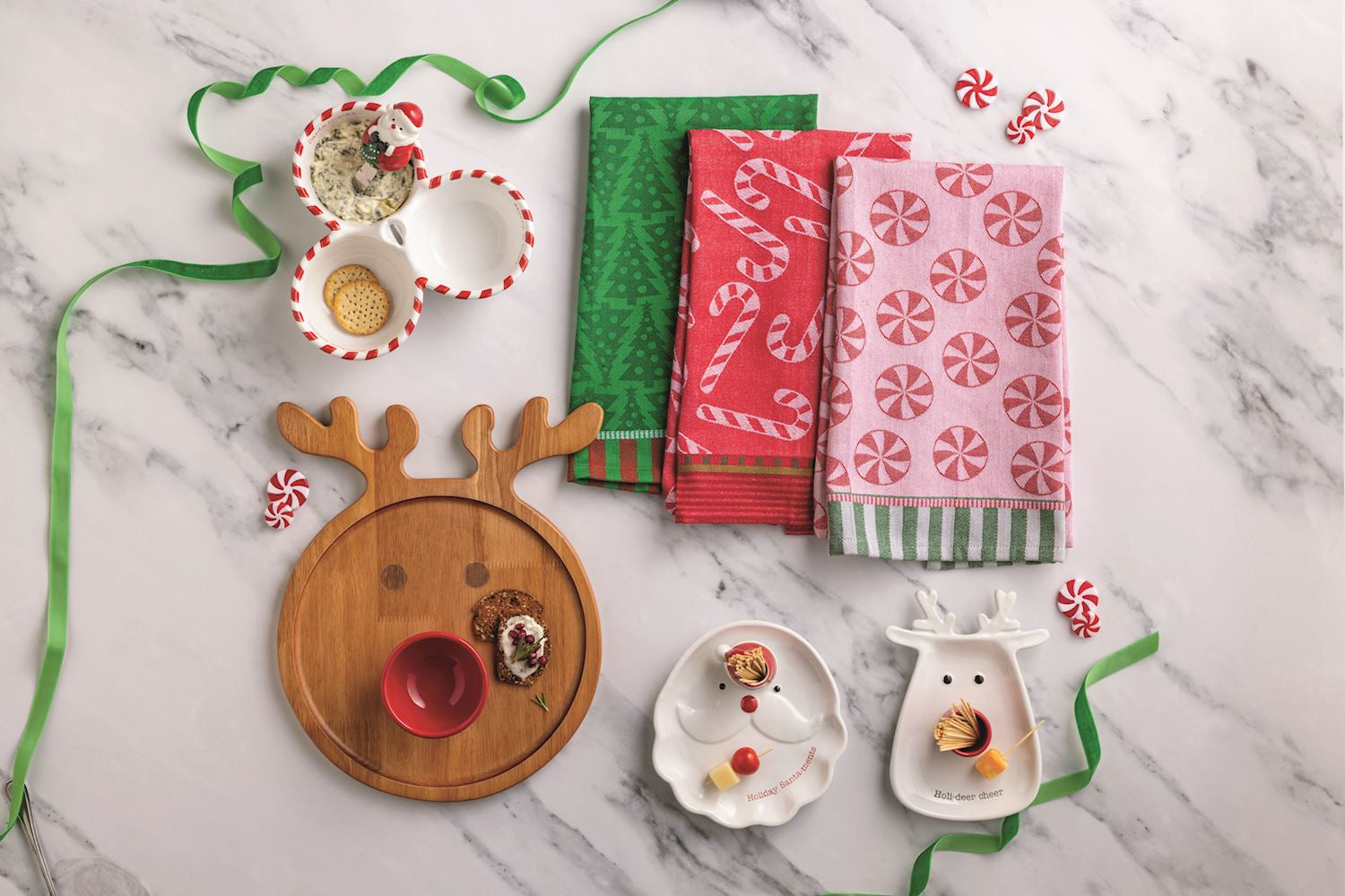 Peppermint patterned jacquard hand towel with contrast hem stripe.