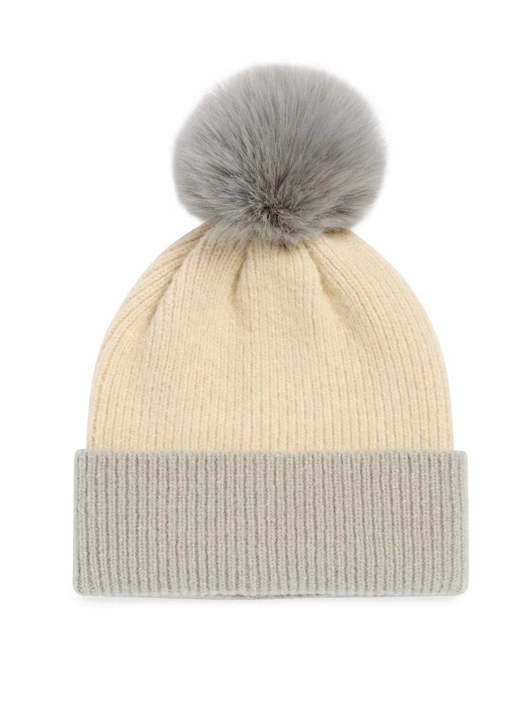 Featuring a two-tone ribbed knit and a plush faux fur pom, this hat adds a playful pop to your cold-weather wardrobe. The fold-over cuff keeps your ears toasty, while the soft fabric keeps things extra comfortable. Whether you’re hitting the slopes or the sidewalk, this hat has you covered.