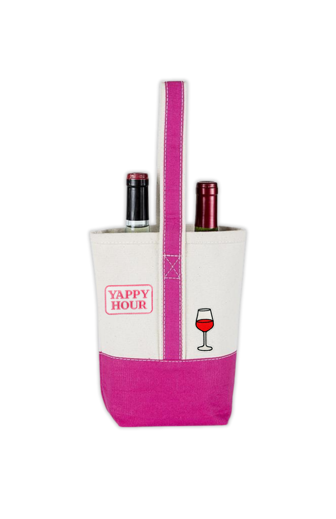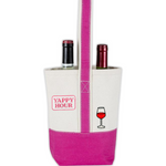Pink Double Wine Bottle Tote Bag with Wine Themed Patches