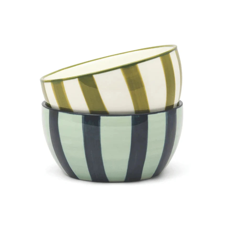 Cool Tone Striped Ceramic Dipping Bowls, Set of 2