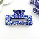 Inspired by traditional Chinese porcelain, this Blue & White Cutout Hair Claw combines classic elegance with a modern silhouette. The rectangular openwork frame keeps the clip light and airy, while the delicate blue floral motif adds timeless charm.