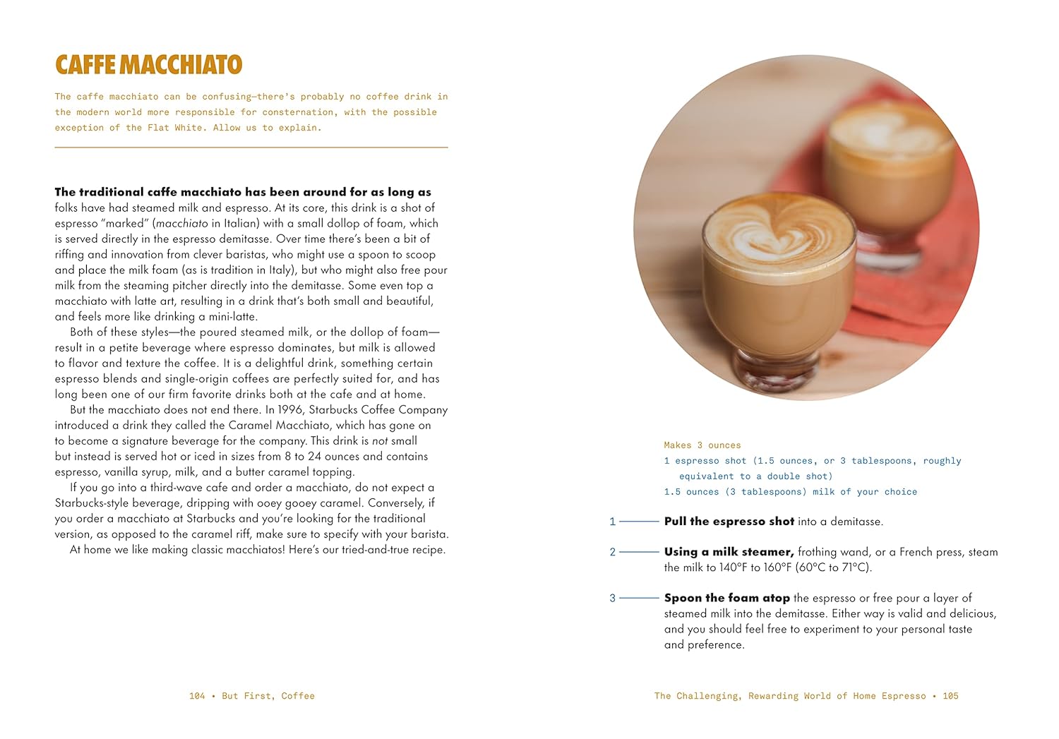 Whether you use an automatic coffee maker or a fancy La Marzocco espresso machine, this book will build your coffee-crafting knowledge, with recipes such as Caffe con Panna (a shot of espresso topped with whipped cream), Affogato (espresso poured over ice cream), a coffee-chocolate syrup, and the classic Espresso Martini.